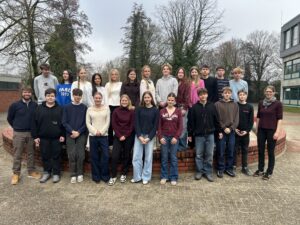 Unsere 9w mit den Profilfachlehrern Herr Bodewein und Herr Schierke: Die Schüler:innen freuen sich über einen Geldpreis in Höhe von 1500 Euro.