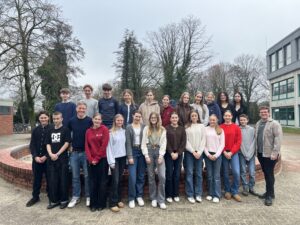 Unsere 10w mit den Profilfachlehrern Frau Berghaus und Herr Hoppe: Sie haben den Hauptpreis gewonnen und fahren im Juni für eine Woche nach Berlin.
